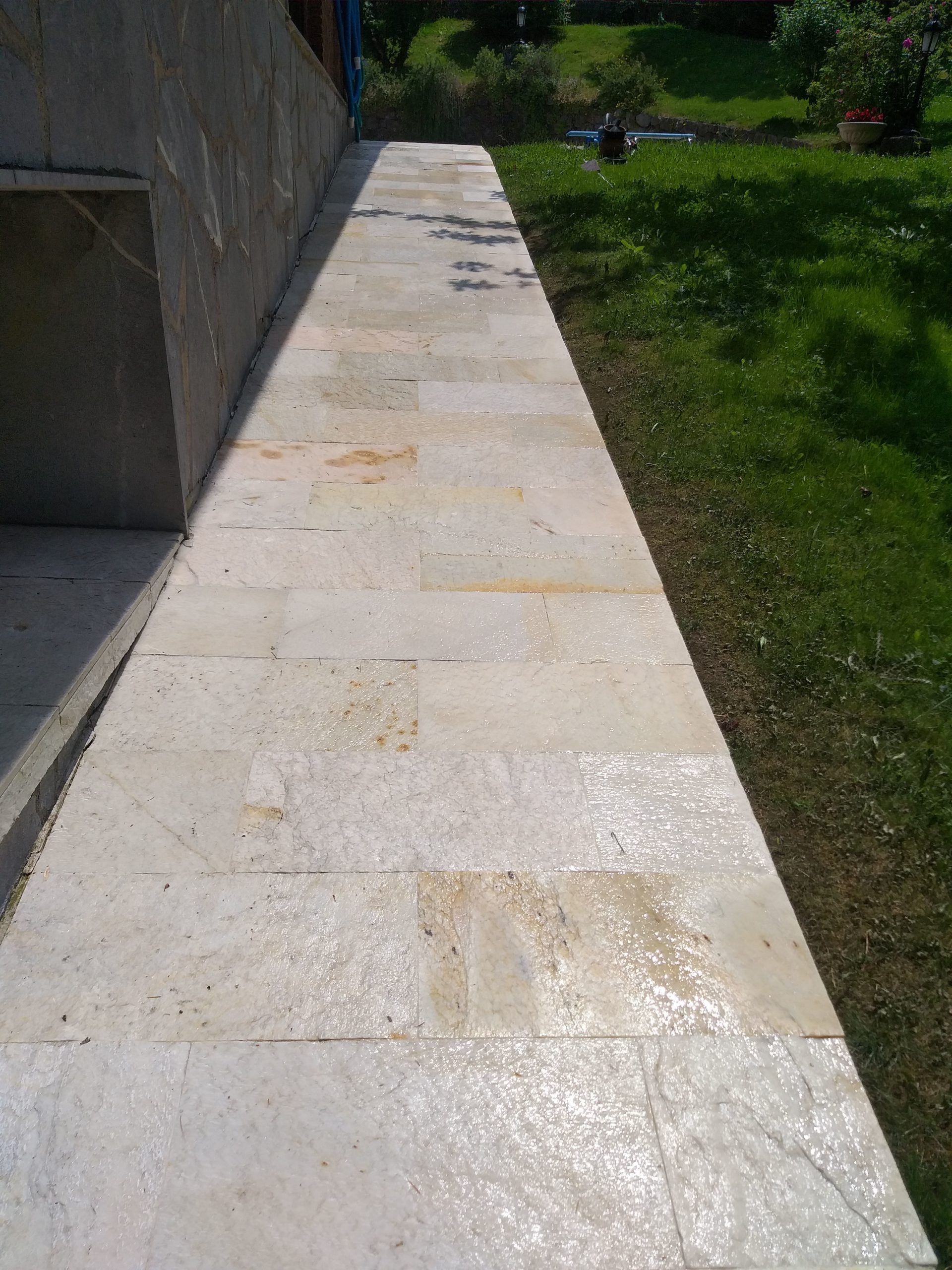 El tratamiento consiste en una modificación de la estructura cristalina de las superficies minerales, creando una red de micro concavidades, que realizan un efecto ventosa al estar mojados, y las convierte en superficies seguras sin necesidad de obras.
